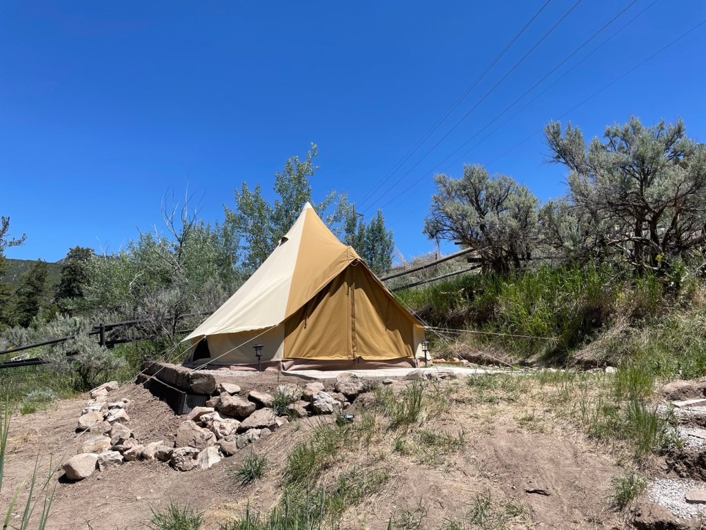 In 2024 we added a new rental option, the luxury “Pat’s Perch” glamping tent! Come stay in a solar-powered tent with a fully furnished full bed, a gorgeous view of the mountain, and all the fresh air you can breathe. 🫁😌